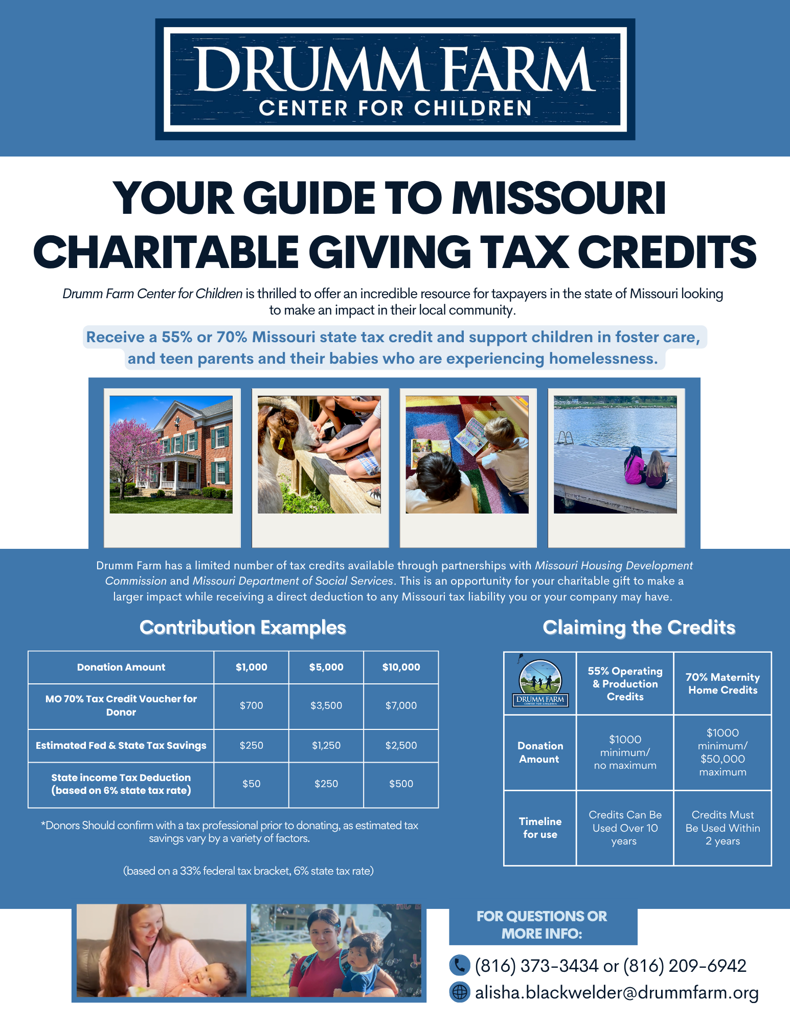 Looking for a way to maximize your tax return and give back to an amazing cause? Missouri charitable giving tax credits are available!